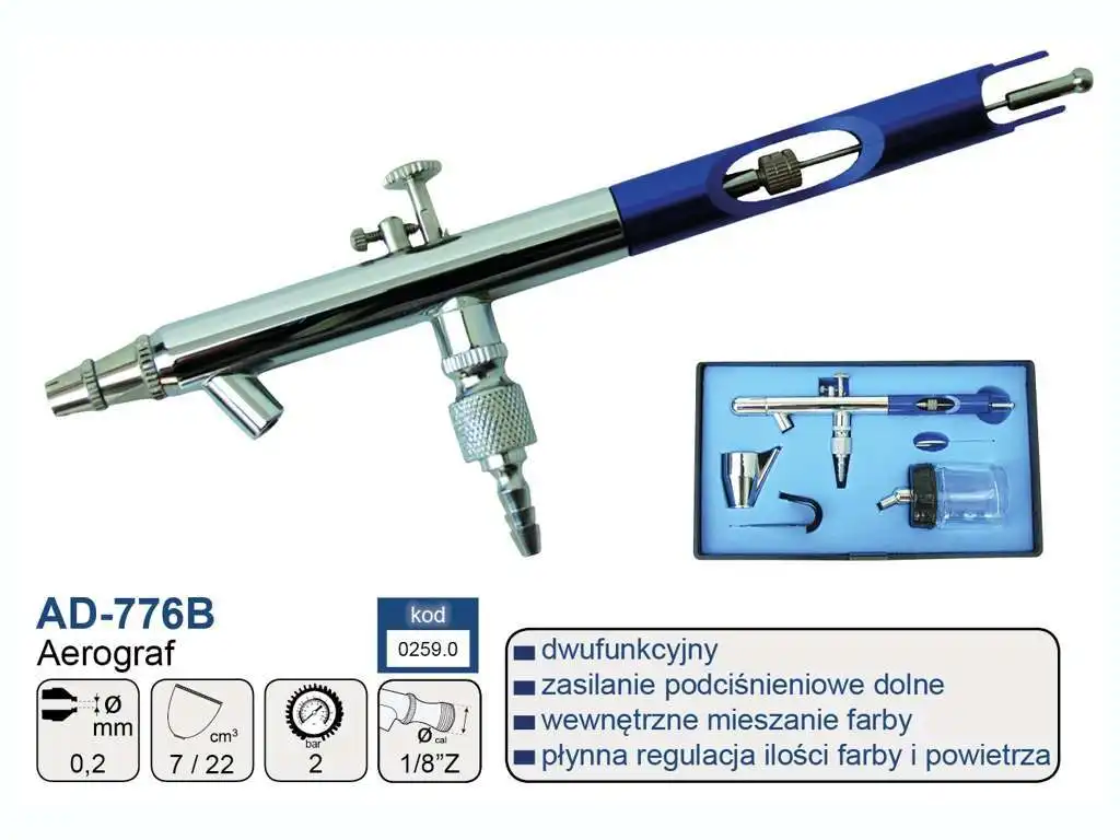 Nezávisle dvojčinná airbrush pistole Adler AD-776B se šroubovací tryskou 0,20 mm.