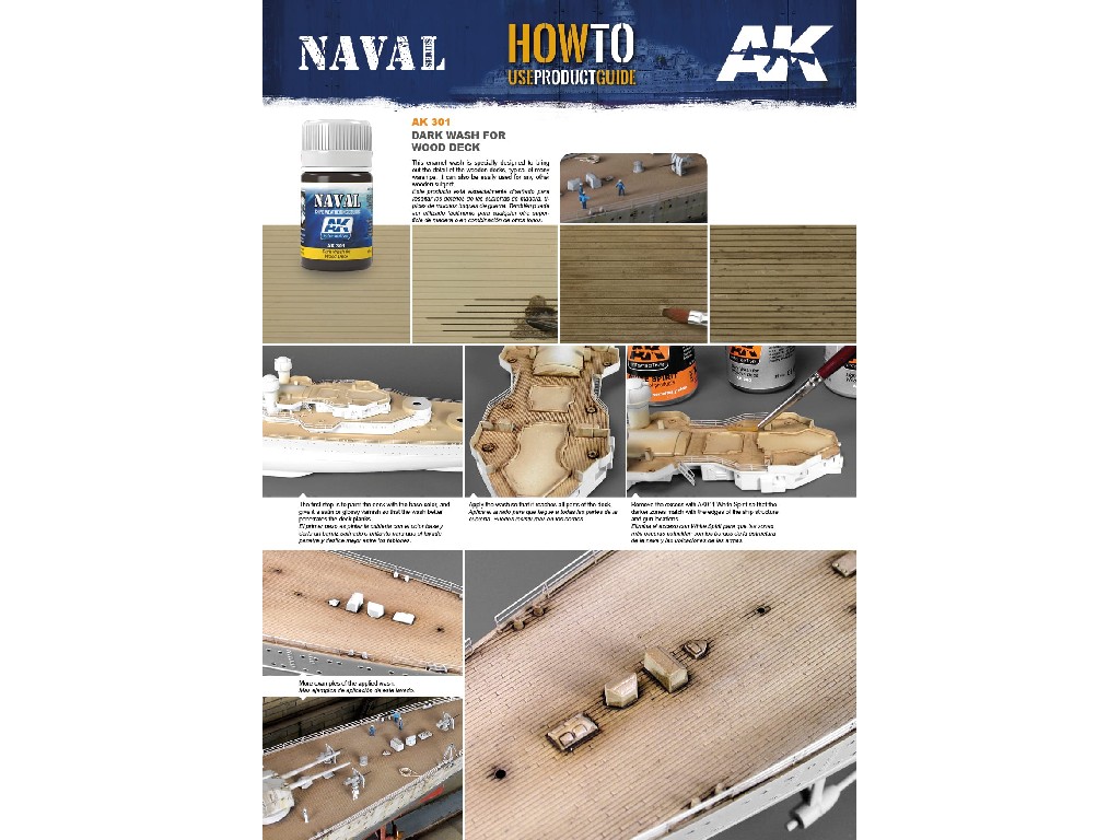 Tento wash je speciálně navržen tak, aby vynikly detaily dřevěných palub typických pro mnoho válečných lodí. Může být také snadno použitelný pro všechny ostatní dřevěné předměty.
