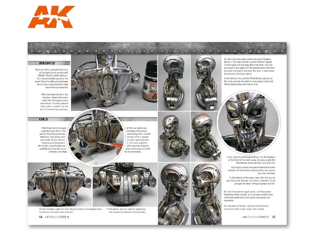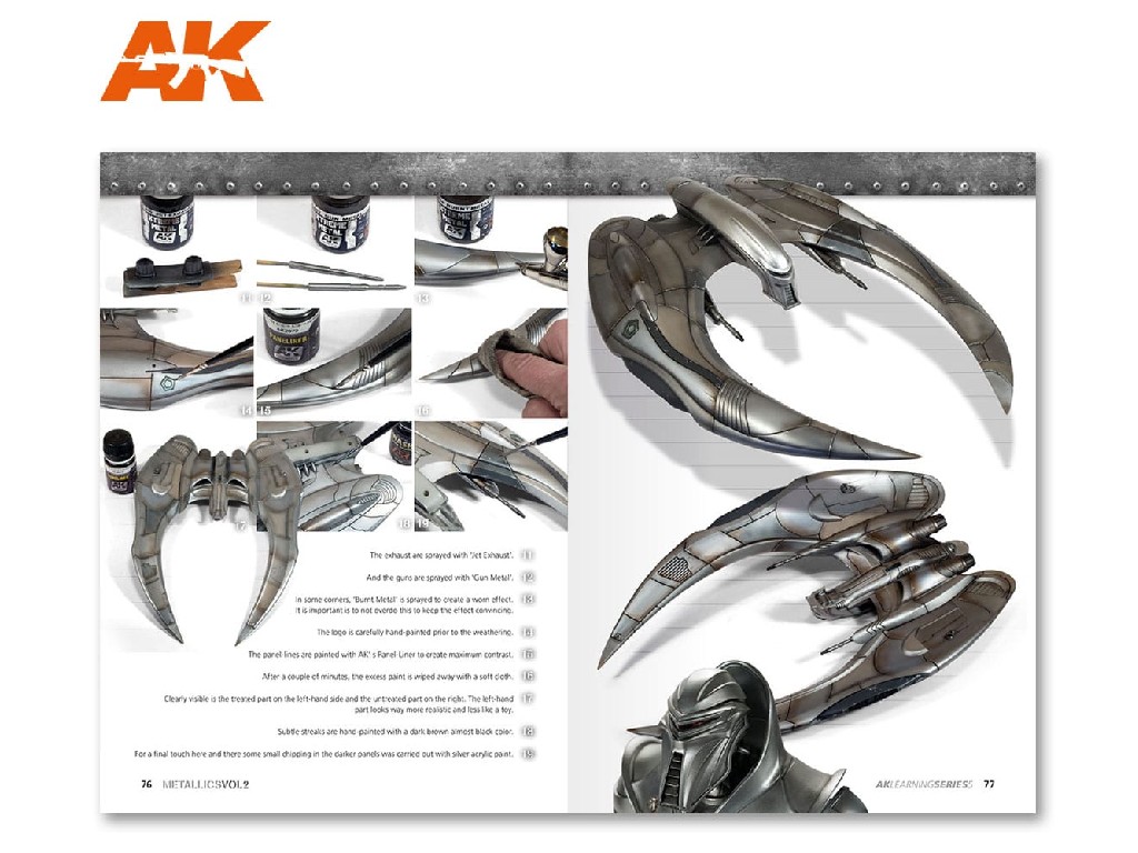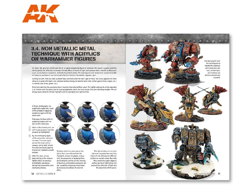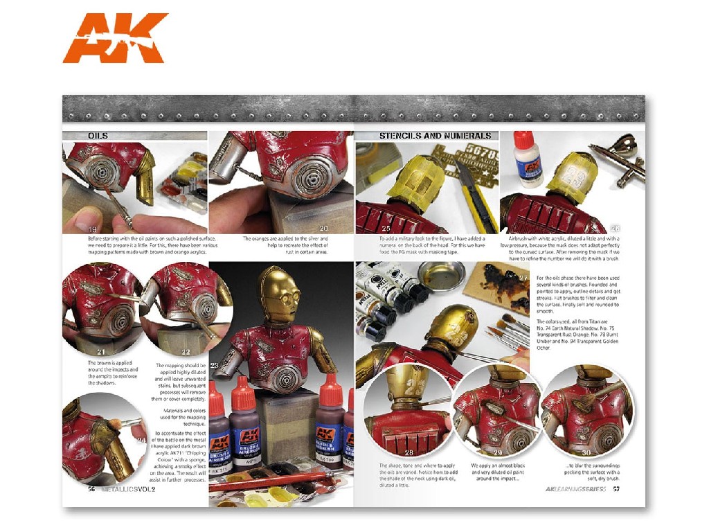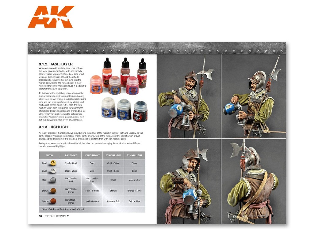Nezáleží na tom, ve kterém modelářském oboru tvoříte. V určitém okamžiku se ocitnete před kovovým dílem, který samozřejmě chcete ztvárnit co nejrealističtěji. Existuje mnoho způsobů, jak dosáhnout kovového povrchu, od použití smaltu, k voskům a holým plechům. Talentovaní umělci ze série AK Interactive Learning Series vás provedou cestou přes náročné úkoly zvládnutí metalických materiálů. V tomto prvním dílu vám ukážeme, jak porozumět kovovým barvám a jak je správně aplikovat. Také kniha nabízí techniky a tipy, které jsou užitečné, poikud jste uvízli. Uvidíme příklady aplikované na warhammer, historické nebo sci-fi postavy.