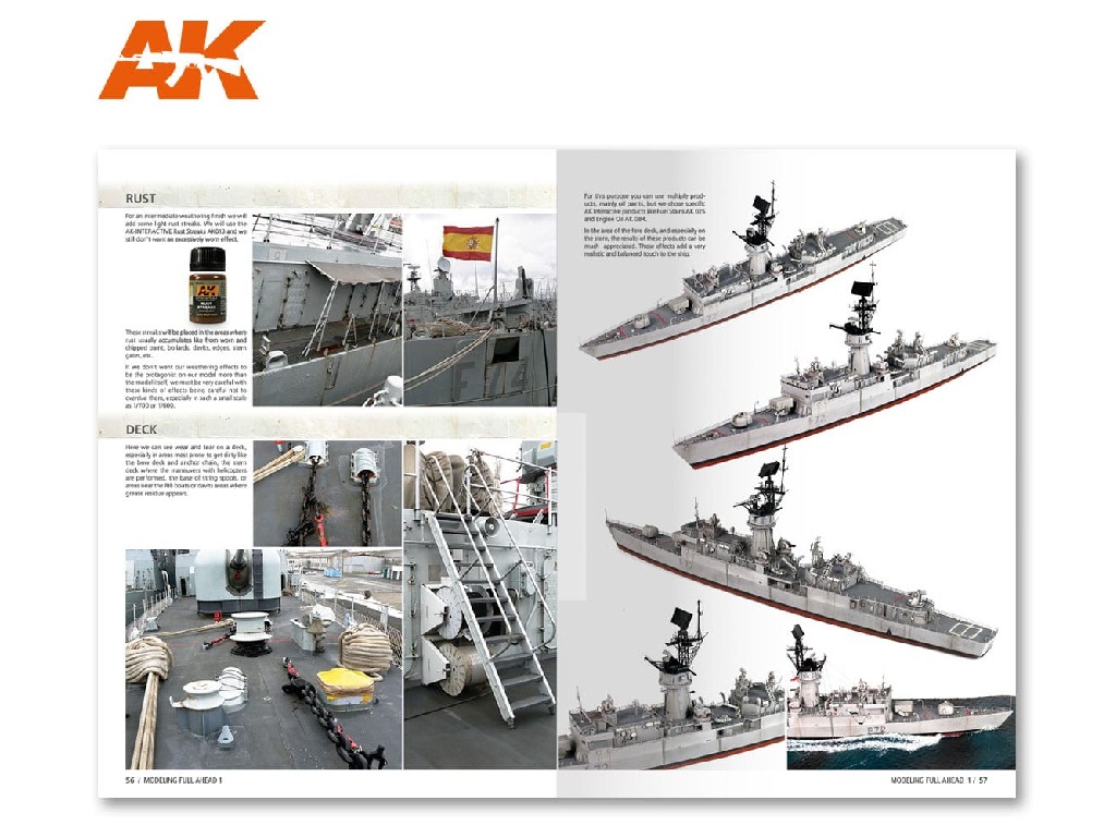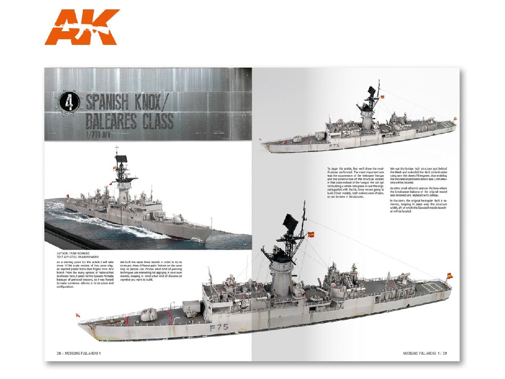 Cílem je soustředit se na určitou třídu lodí. Z obrázků, které ukazují všechny úhly lodě, na modely modelů, které můžete použít, a samozřejmě podrobný krok za krokem, jak přeměnit model lodi na vynikající umělecké dílo. Pro toto první vydání Fran Romero, dobře známý mistr v lodním modelářstvíí, ve spolupráci s italským modelářem Lucianem Rizzatem, nás provádí obtížným, ale vzrušujícím způsobem modelování fregaty třídy Knox / Baleares. Sledujte Fran a Luciana v jejich postupu kolem třídy Knox / Baleares, od standardních sad až po 4 vynikající modely s různými účinkami povětrnostních vlivů. Snadno a prakticky se naučte své techniky. Kniha od modelářů pro modeláře musí zlepšit vaše námořní modelovací dovednosti.