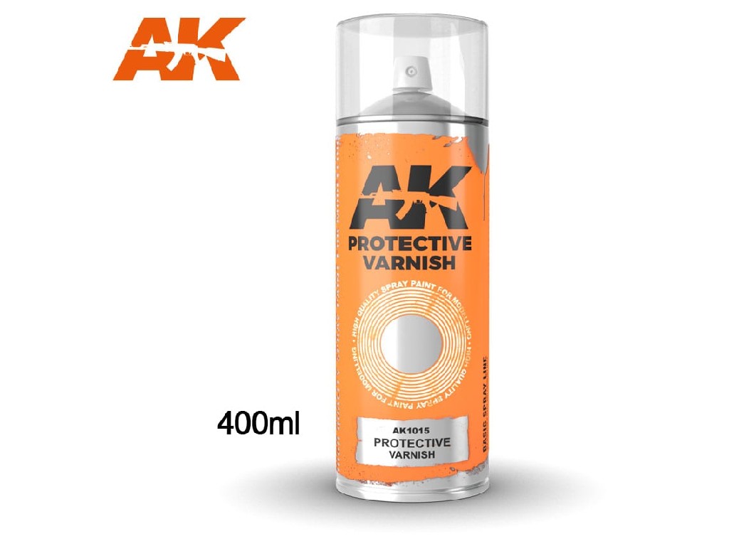 AK Interactive Protective Varnish Spray je univerzální ochranný lak ve spreji pro modely, figurky a diorámata. Poskytuje mechanickou ochranu nátěru, sjednocuje finiš a chrání před poškozením. Ideální pro finální vrstvy po patinování.