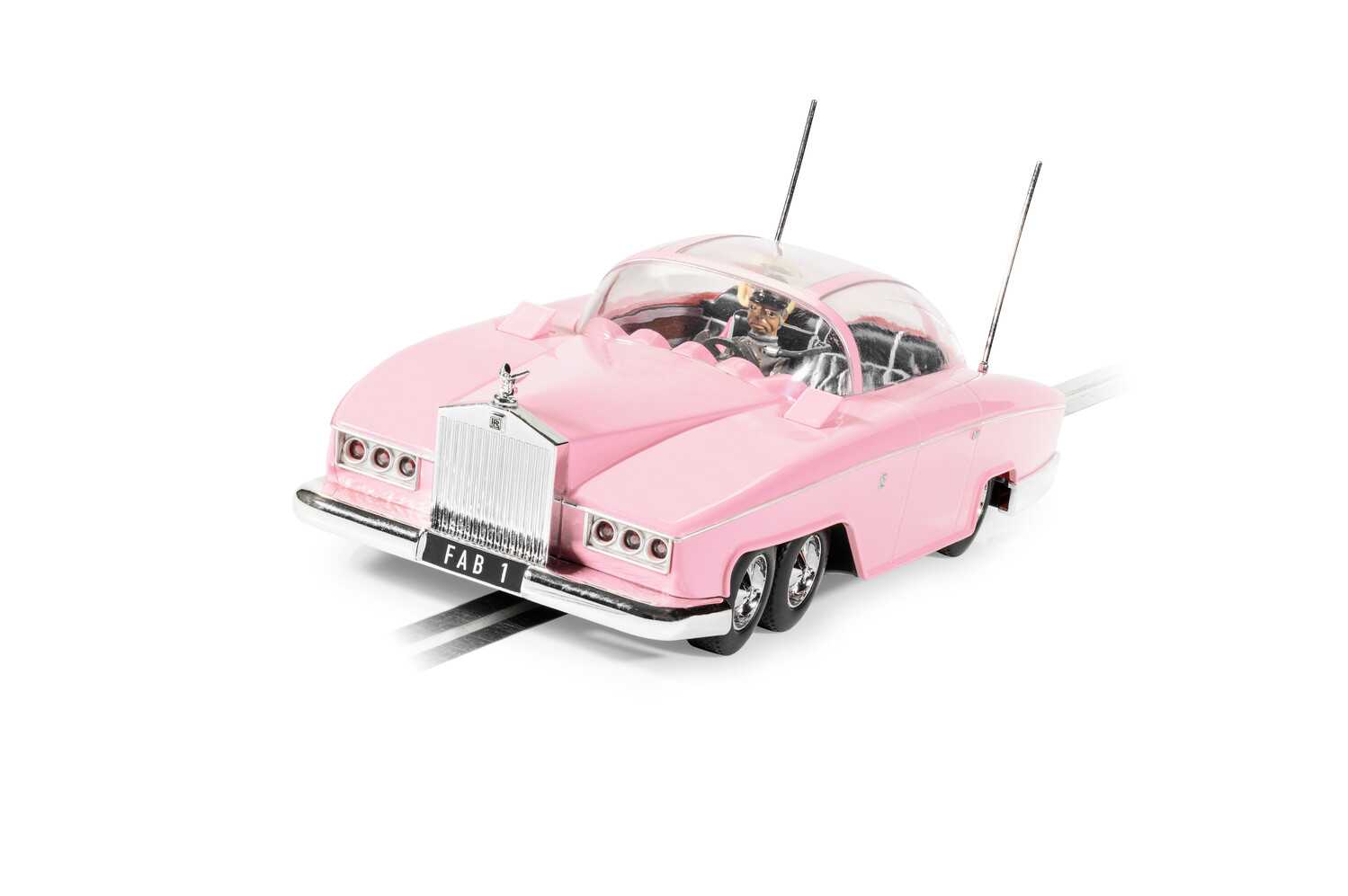 Ikona britské televize je nyní poprvé k dispozici v podobě autíčka! Ikonický vůz Lady Penelope FAB 1 je nyní autíčkem Scalextric! Úžasný šestikolový Rolls Royce s Parkerem za volantem a Lady Penelope vzadu, která dává příkazy, vypadá fantasticky v růžovém provedení a je vybaven kompletním luxusním interiérem i ikonickou mřížkou vpředu.