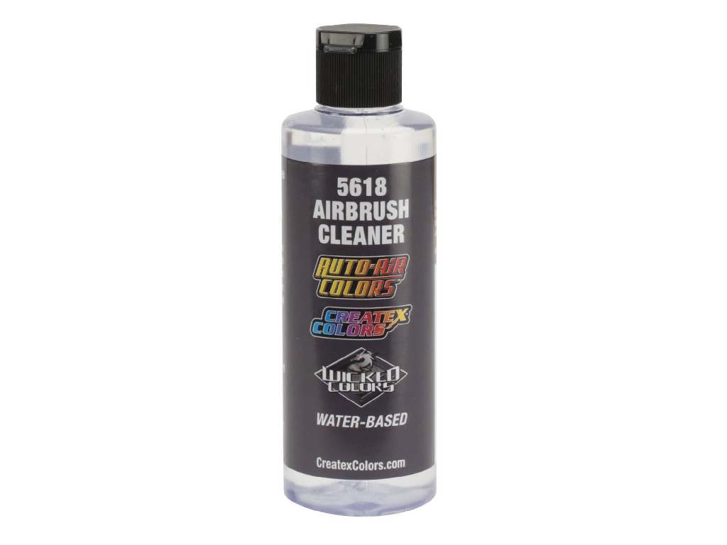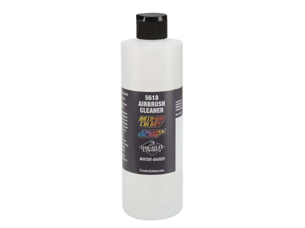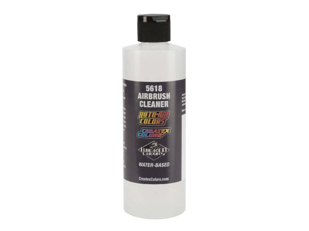 5618 Airbrush Cleaner rychle a šetrně odstraňuje zbytky akrylových barev Createx z pistolí, štětců i pracovních ploch. Pomáhá předcházet ucpávání trysky a usazeninám pigmentu.