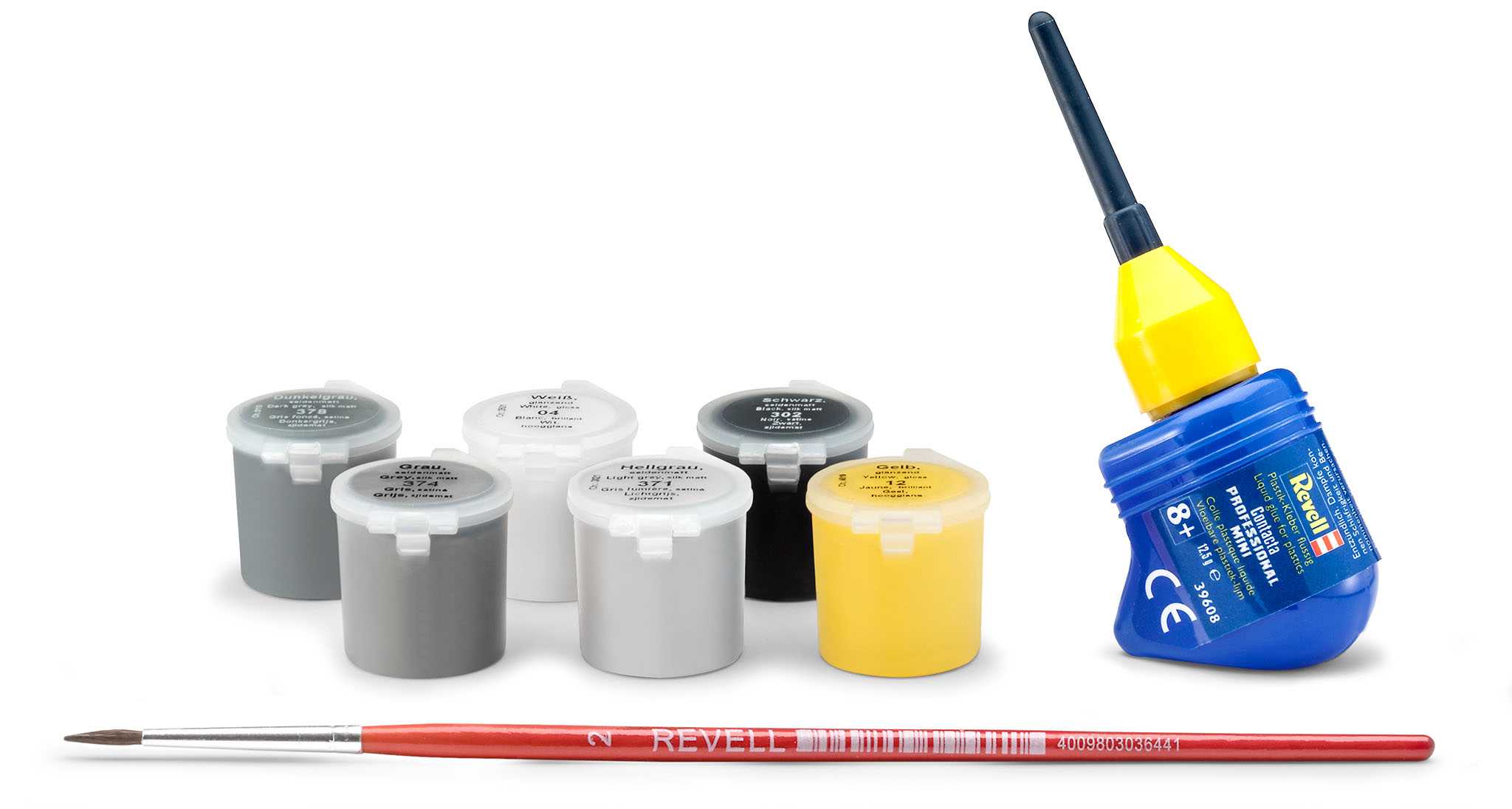 Akrylová barva pro modeláře Revell Aqua Color (5 ml) Návod na použití: Vodou ředitelná akrylová barva. Před použitím barvu dobře promíchejte. Nanášejte štětcem, nebo stříkáním na suchý, čistý povrch. Nehořlavá báze, rychle zasychá – nebarvitelné po 1 hodině, úplně uschne za 2–3 hodiny, podle tloušťky vrstvy. V případě potřeby zřeďte vodou.