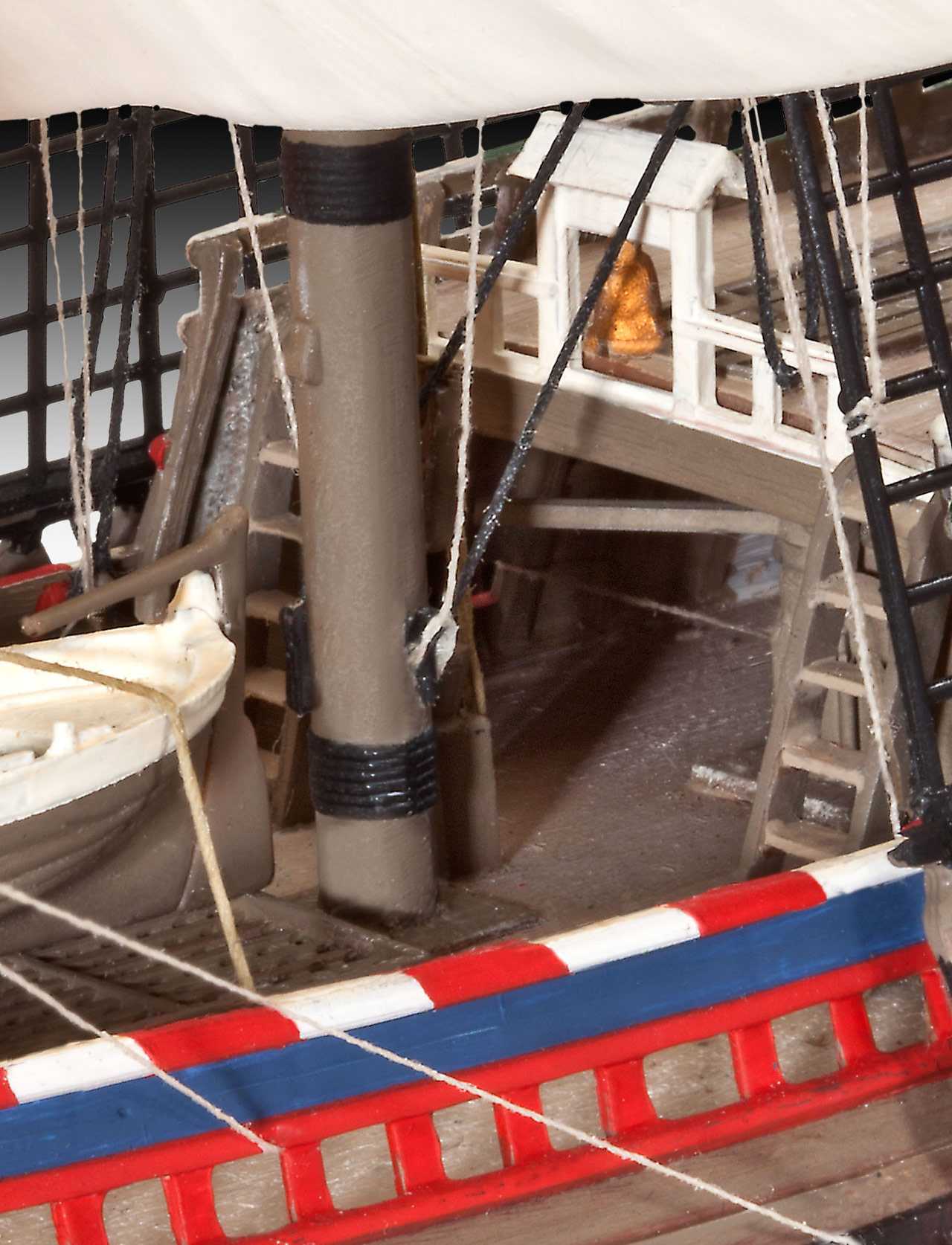 Plastový model (nesestavený), ilustrovaný vícejazyčný návod na sestavení, sada obtisků, barvy (Revell Aqua Color), štětec, provázek, lepidlo (Revell Contacta Professional Mini), plakát, 5 figurek posádky