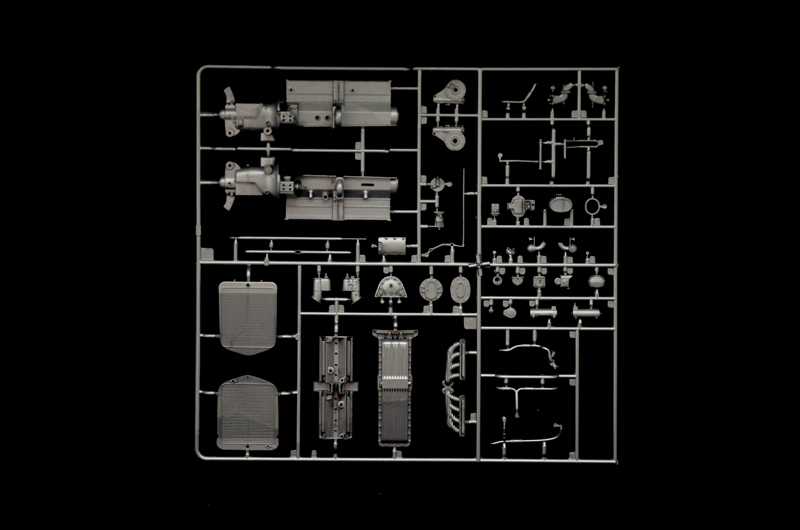 Barevný návod – Řiditelná kola – Realistické zavěšení kol – Velmi detailní motor – Gumové pneumatiky - 320 plastových částí - 30 chromovaných částí – Díly z fotoleptaného kovu – Otevíratelná kapota motoru – Šroubky, hadičky, lano a nylonová síťka