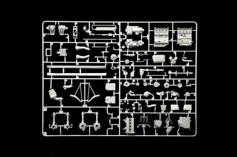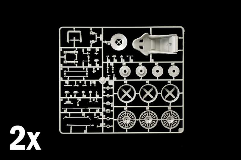 100% nové formy vysoce detailní model - 2 listy super obtisků - Fotoleptané pražce a chromované díly - Sada příslušenství s hadicemi, šrouby a pružinami - Přední a zadní otevírací kapota - Otevírací přední dveře - Vysoce detailní interiéry - Věrná reprodukce motorového prostoru - Funkční odpružení - Gumové pneumatiky - Volanty