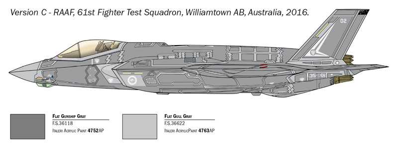 Model letadla ke slepení. Velikost: 1:72; 21,4 cm. Balení obsahuje polepy pro 5 verzí modelu.