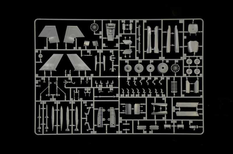 Model letadla ke slepení. Měřítko: 1:72; velikost: 217 mm. Balení obsahuje polepy pro 3 verze modelu.