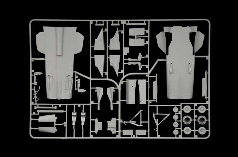 Model letadla ke slepení. Velikost: 1:48; 38,1 cm. Balení obsahuje polepy pro 6 verzí modelu.