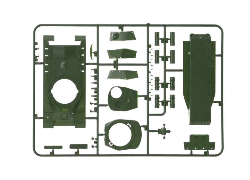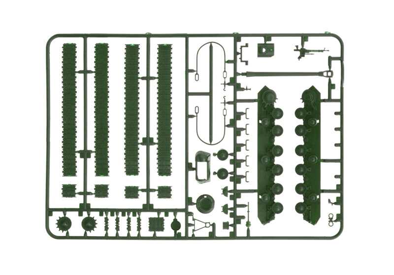 Model tanku ke slepení. Velikost: 1:56; 17,7 cm. Obtížnost: 1.