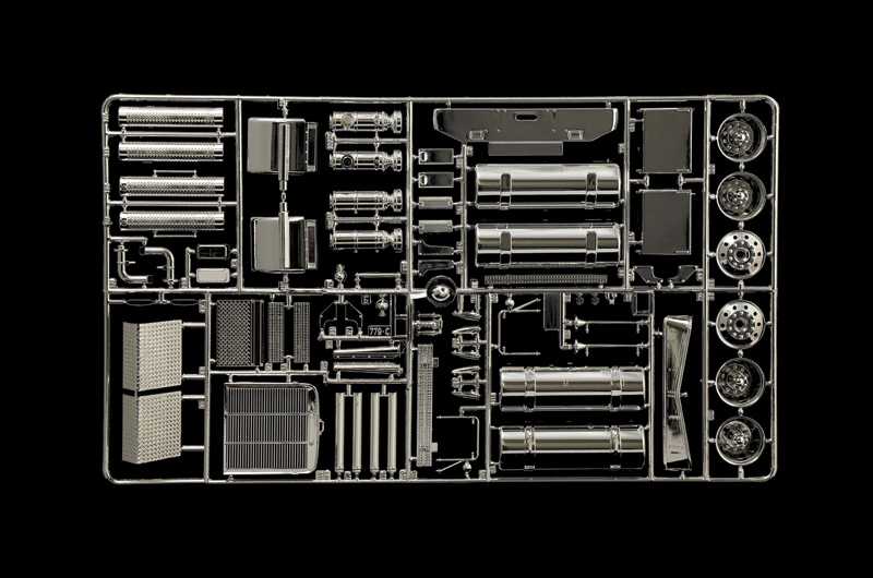 Model trucku ke slepení. Velikost: 1:24; 34,2 cm. Obtížnost: 5. Model pro modeláře od 14 let.
