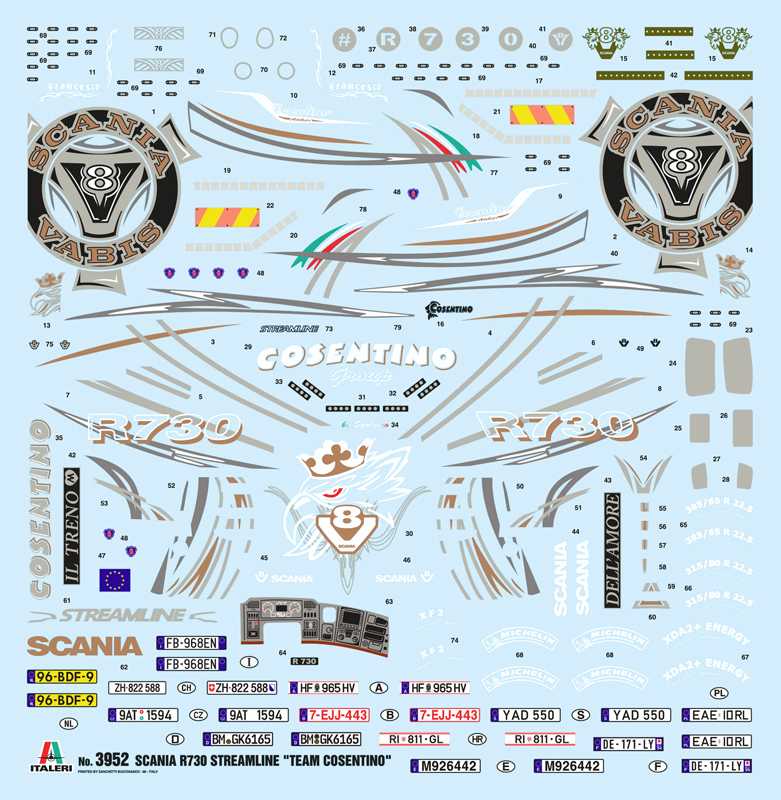Těžké tahače Scania řady R jsou k dostání s motory V8 a byly vyvinuty na základě současných požadavků světového trhu. Tyto agregáty jsou postaveny tak, aby zvládly i ty nejtěžší úkoly, a obzvláště oceňována je jejich bytelnost, reaktivita a úspornost. Díky nim jsou vozy této řady připraveny splnit i ty nejnáročnější požadavky na spotřebu paliva a spolehlivost. Vzhled těchto strojů budí na silnici značně impozantní dojem a ne náhodou jsou považovány za jedničku na slavných akcích “SHOW TRUCKS”, na kterých se předvádějí vyšperkované tahače. Jejich výjimečná vizáž zároveň dobře ladí s exkluzivními novými interiéry, které posyktují řidiči opravdu vysokou úroveň pohodlí a zájemcům dávají na výběr z široké řady barev a materiálů. Kromě toho je navíc tento model dotažen k dokonalosti pomocí fantastických obtisků a „pokovených“ samolepek okamžitě připravených k použití. Balení dále obsahuje také nové plastové části imitující chrom, které modelu ještě přidávají na realistickém vzezření.