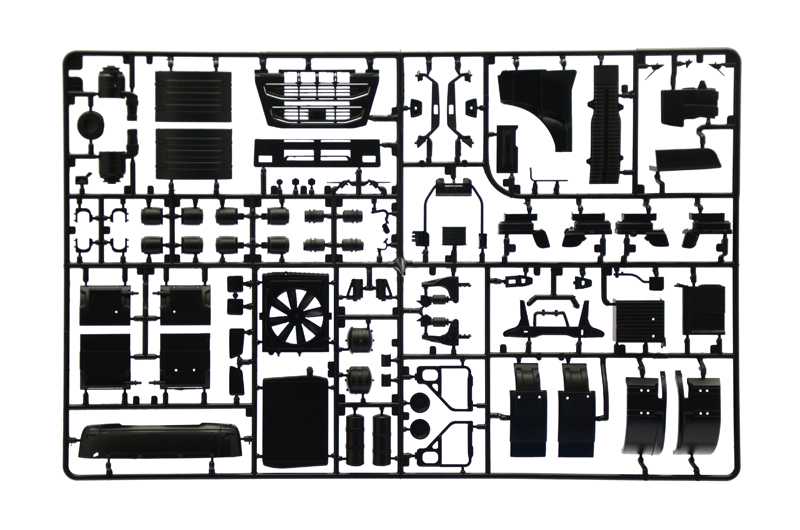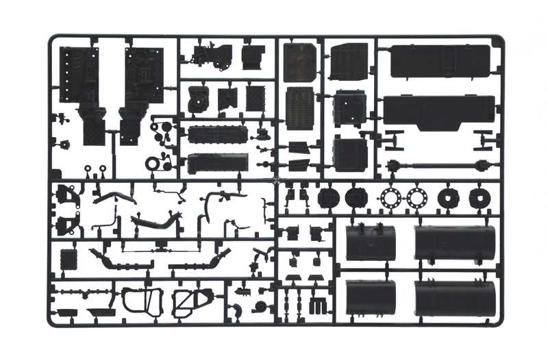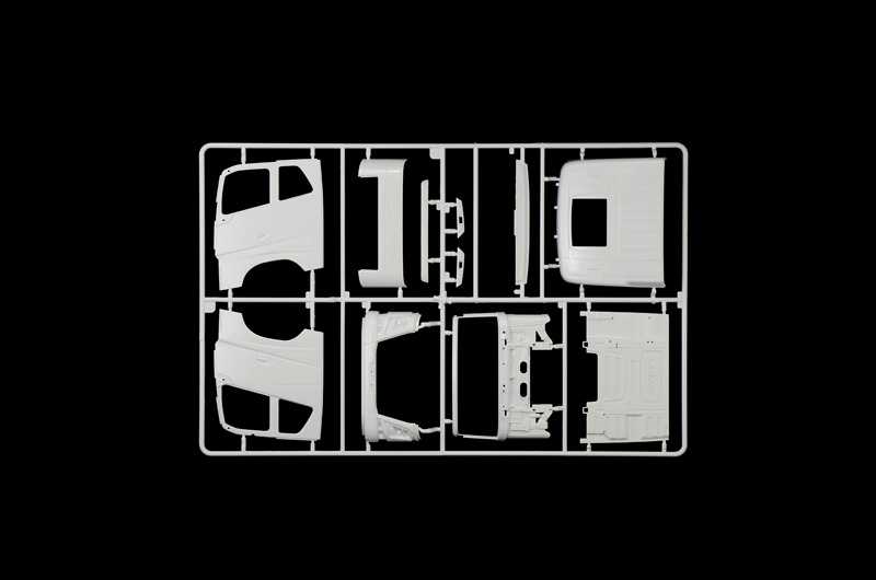 Nové Plně detailní kabina a interiér - Plně detailní motor a rám - Otevřené nebo zavřené dveře řidiče - Otevřená nebo zavřená mřížka chladiče - Chromované lepidlo - Fotoleptané díly - Gumové pneumatiky - Barevný návod k použití