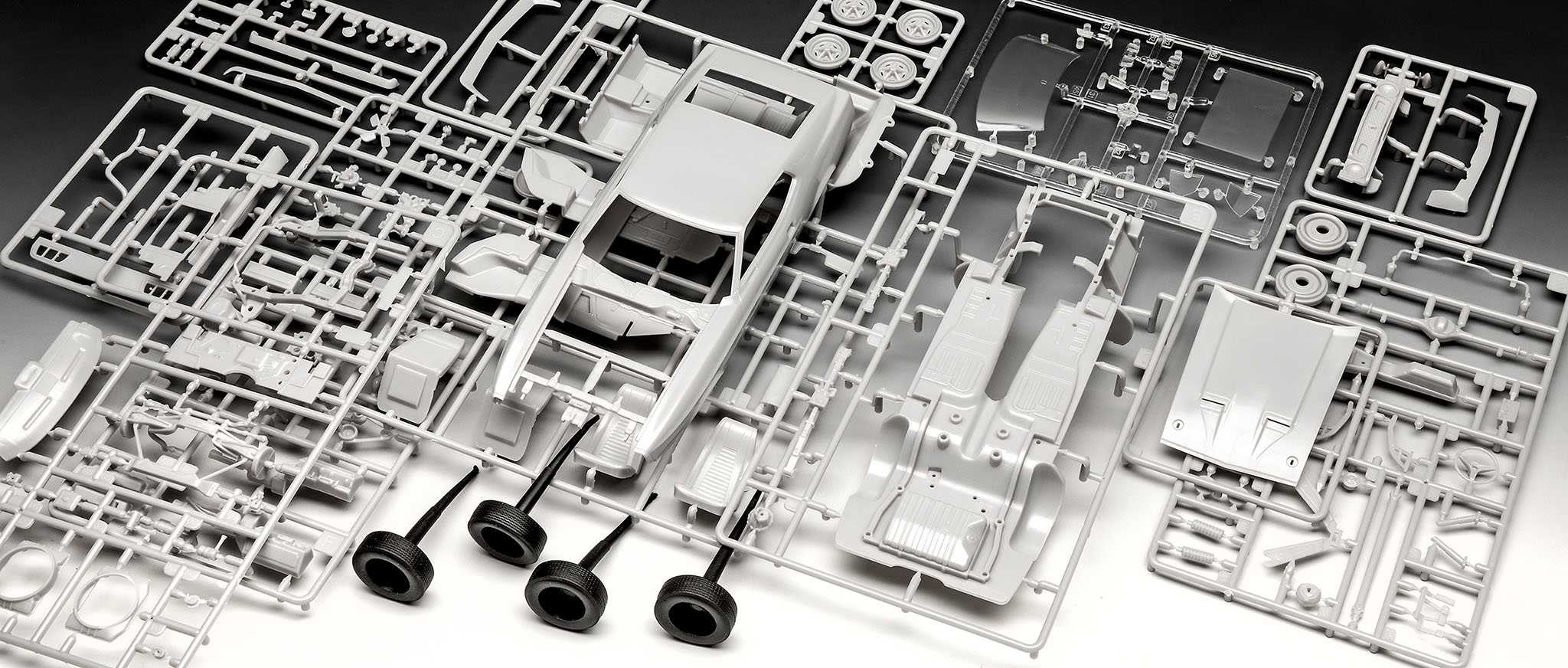 Kromě nesestaveného modelu obsahuje balení ilustrovaný vícejazyčný návod a obtisky, abyste si mohli model přizpůsobit podle svých představ. Speciální prvky modelu: mnohodílný motor V8 a otevíratelná kapota, které umožňují nahlédnout do vnitřní konstrukce vozu. Různé chromované díly, jako je mřížka chladiče a nárazníky, ještě více přidávají modelu na autenticitě.