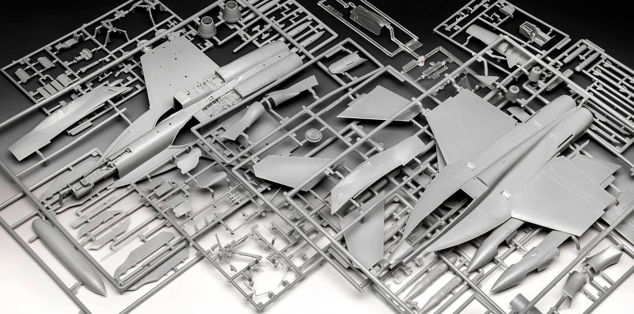Plastový model (nesestavený), ilustrovaný vícejazyčný návod na sestavení, obtisky, samolepky