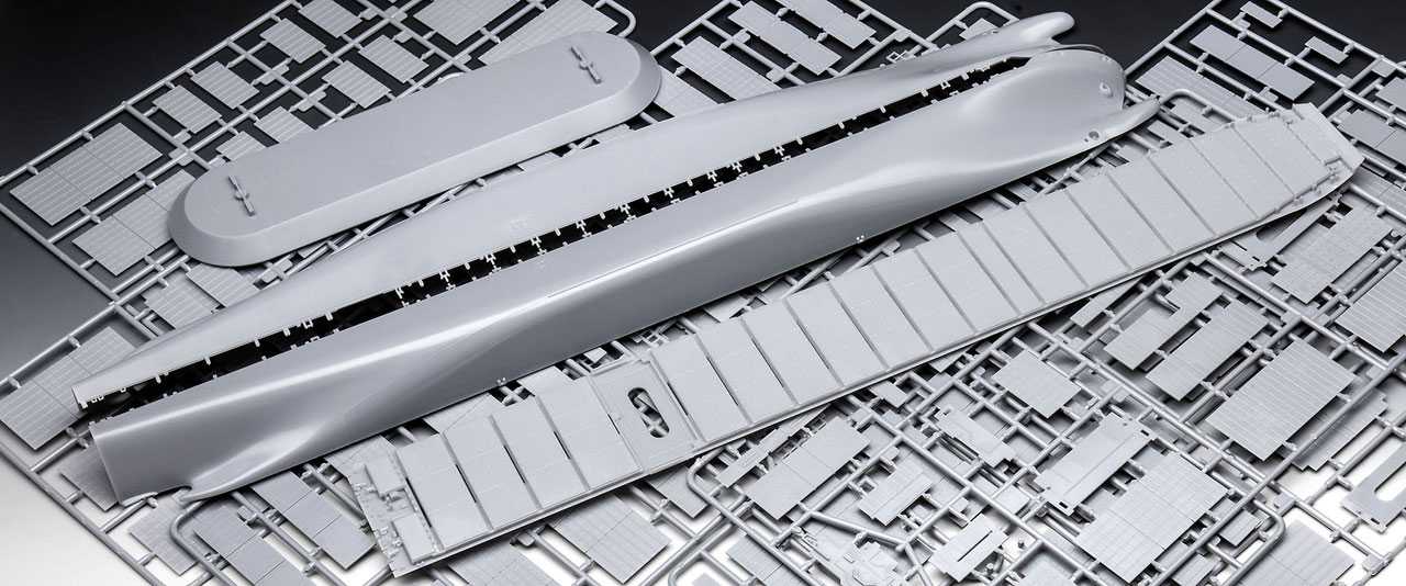 Model lodě ke slepení. Velikost: 1:700; 47,9 cm. Balení obsahuje: 226 dílků ke slepení.