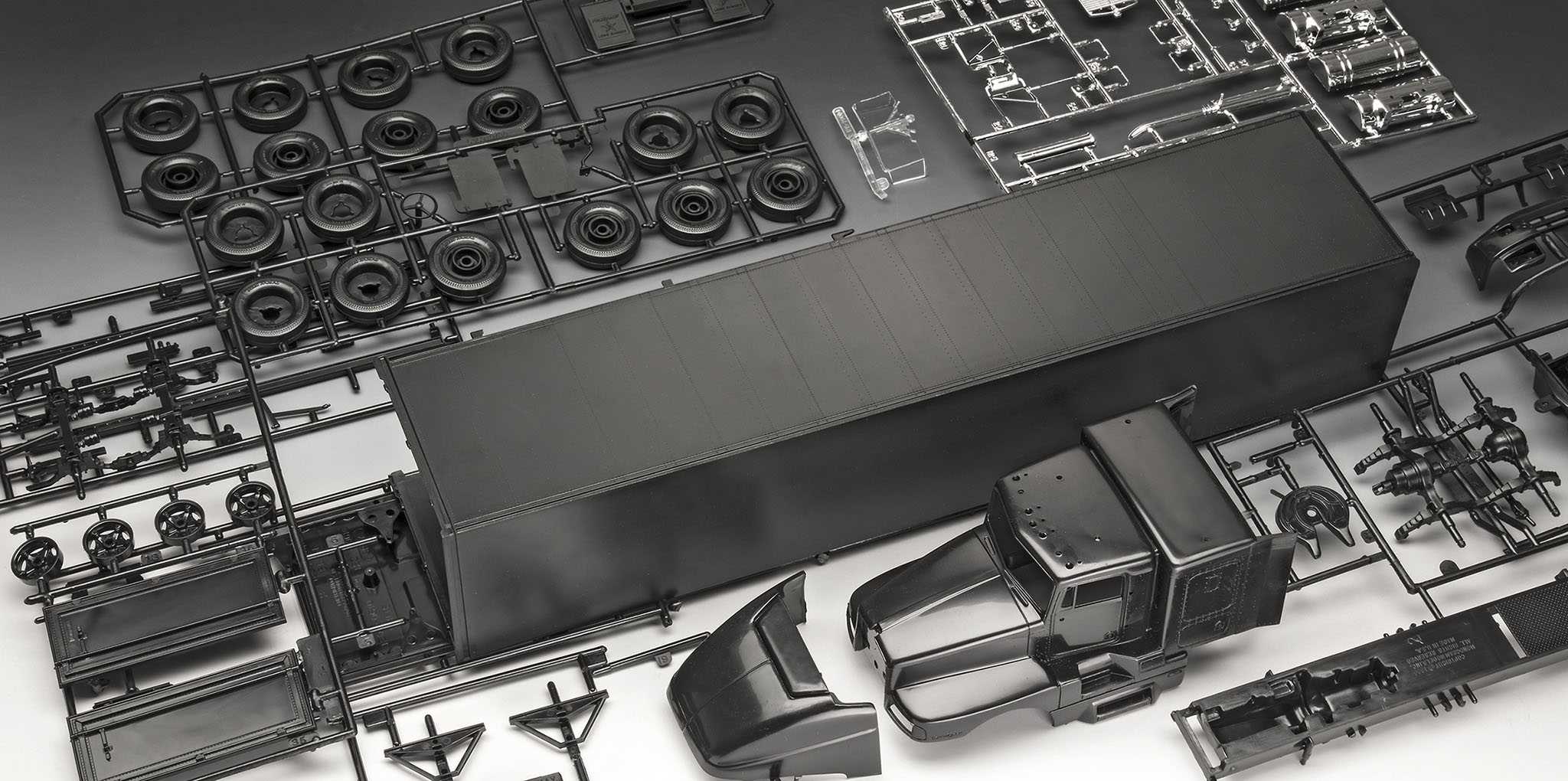 Model trucku ke slepení. Velikost: 1:32; 55,2 cm. Balení obsahuje: 102 dílků ke slepení.