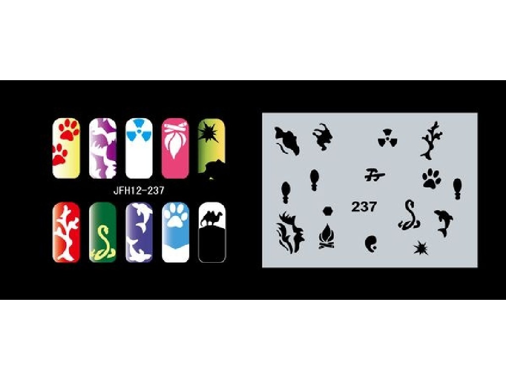 Přikládací šablona pro tvorbu zdobení nehtů airbrush technikou. Známé také jako technika airbrush nail art.