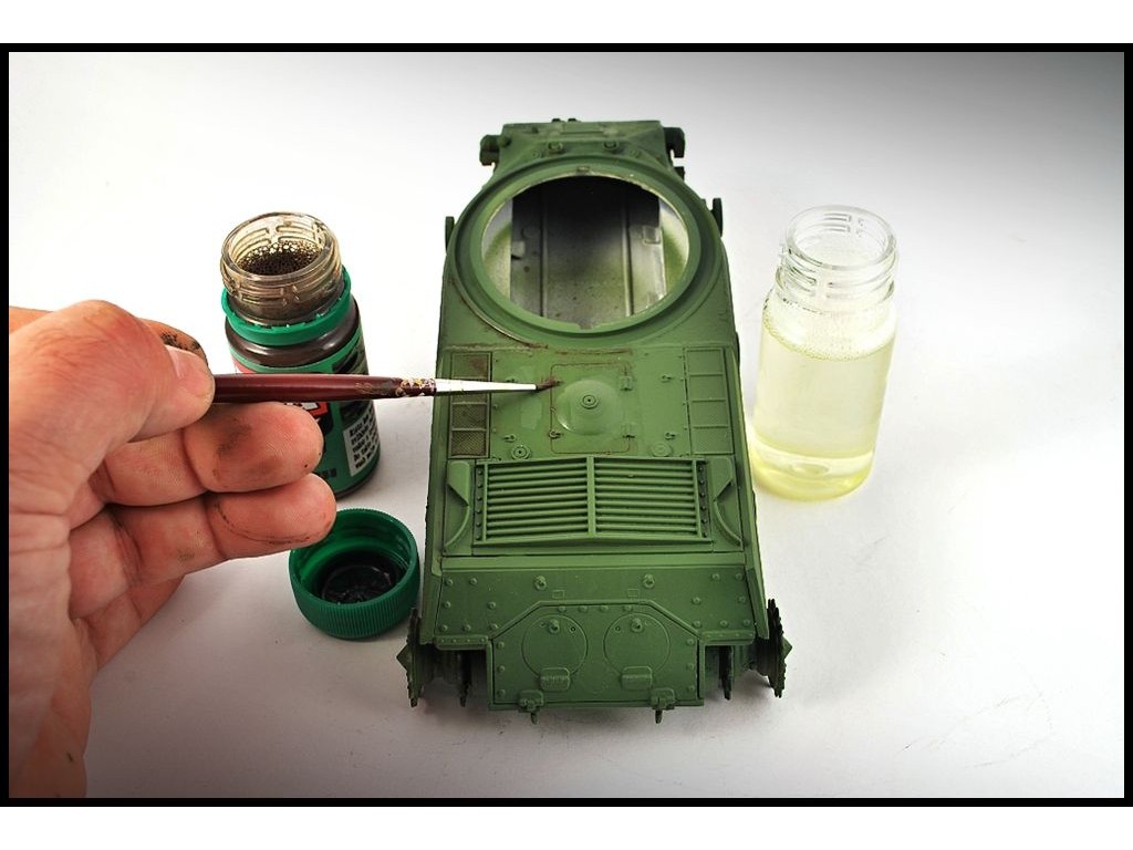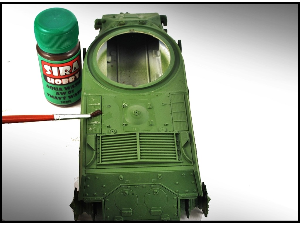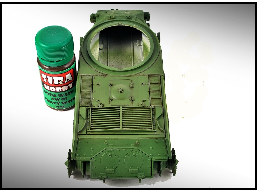 Před aplikací Aqua pigmentu je vždy nutné povrch modelu navlhčit ředidlem Síra Hobby ST02, nebo vodou s trochou saponátu. Díky zvlhčení dojde k dokonalému zatékání washe.