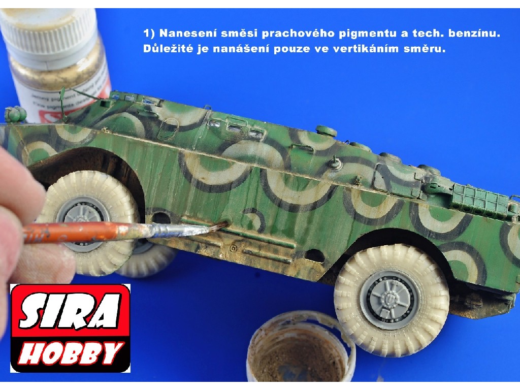 Pigmenty pro modeláře se používají k vytvoření opotřebení a zestárnutí vozidla, stavby, výzbroje, atd. Jsou ideální pro tvorbu špíny, bahna, prachu, které vzniknou při působení času a klimatických podmínek.