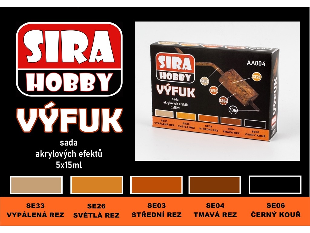 Řada produktů Sírahobby pod označením Efekt jsou přípravky určené k vytvoření různých efektů na povrchu modelu jako jsou odřeniny, rez, očouzení, stečeniny apod.