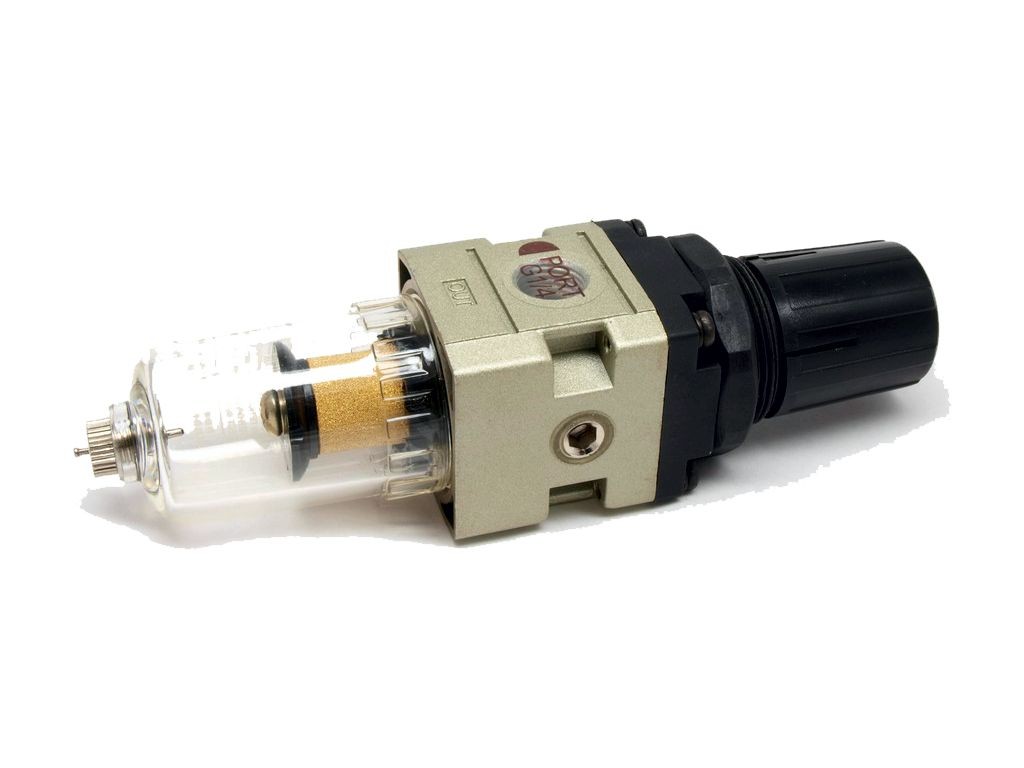 Regulátor tlaku vzduchu s plynulou regulací. Součástí je filtr vzduchu a manometr. Regulátor je na vstupu a výstupu vzduchu opatřen vnitřním závitem G-1/4". Maximální tlak 8 bar. Zajistí čistý, suchý a regulovaný vzduch.