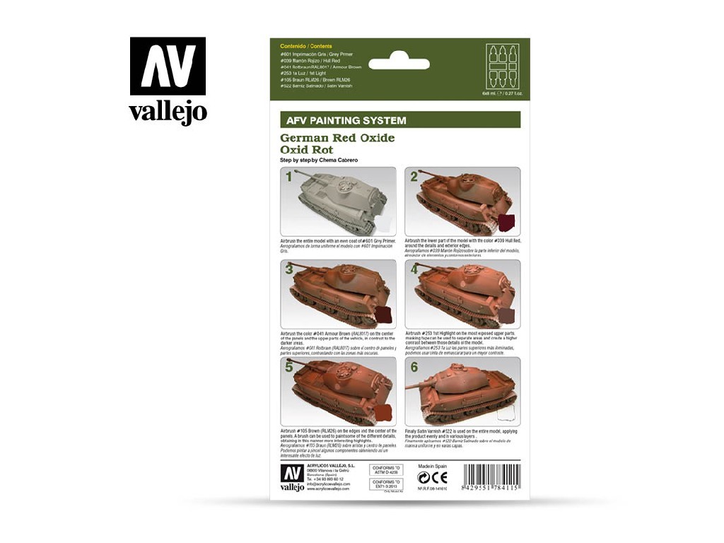 Vallejo – Model Air Set 78411 – AFV German Red Oxide Armour Painting System (6×8 ml)