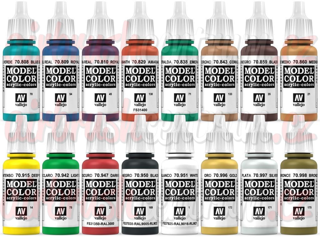 - 16 akrylových barev Model Color po 17 ml s kapátkem – pro detailní malování