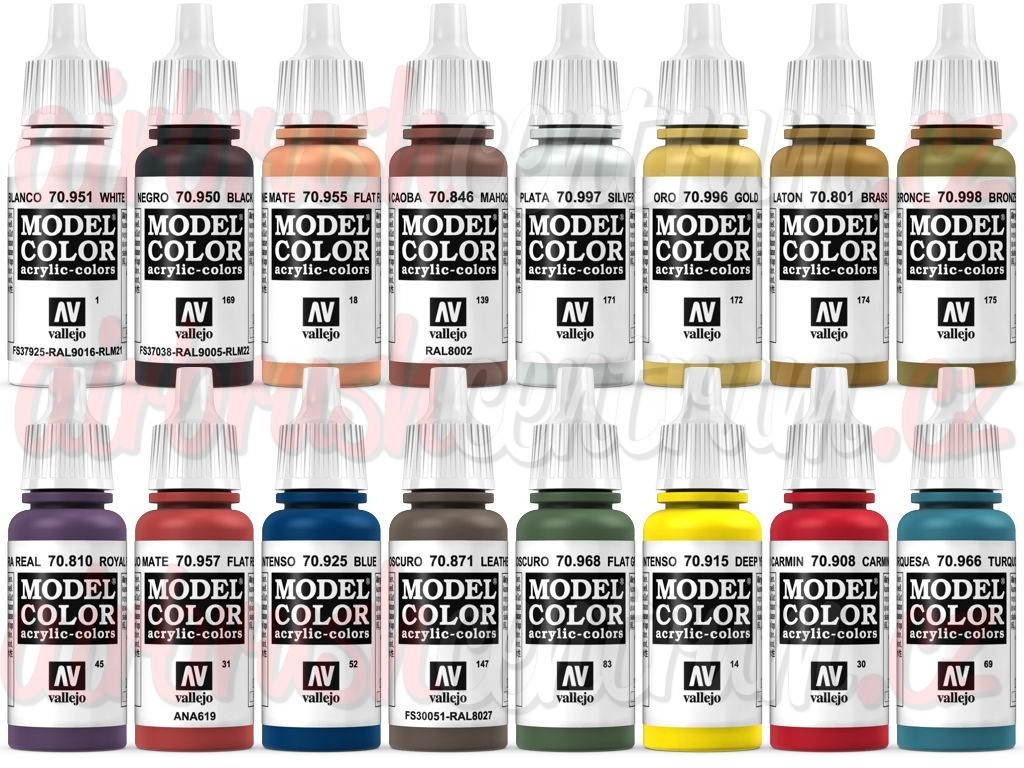 - 16 akrylových barev Model Color po 17 ml s kapátkem – pro přesné malování