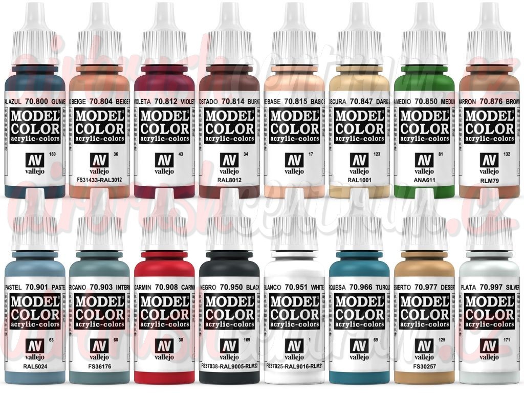 - 16 akrylových barev Model Color po 17 ml s kapátkem – pro přesné malování detailů