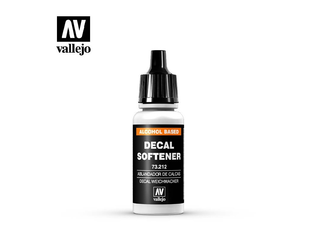 Vallejo Decal Softener je přípravek určený ke změkčení obtisků (decalů) během aplikace na model. Pomáhá jim přizpůsobit se složitým povrchům, jako jsou nýty, panely nebo zakřivené tvary. Po aplikaci se obtisk přisaje na povrch a vytváří dojem přímo malovaného označení.