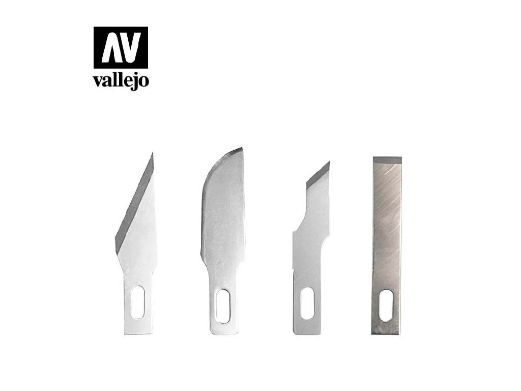 Výběr přesných čepelí v úložném boxu pro složité a detailní řezání, vyřezávání a ořezávání různých materiálů.